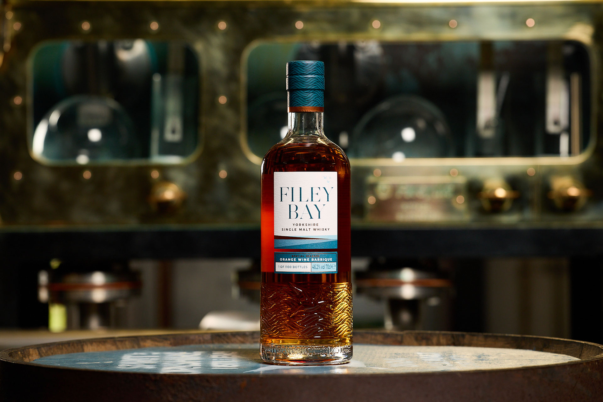 Filey Bay Orange Wine Barrique spędziła pierwsze 3 lata i 3 miesiące w beczkach po Bourbonie, po czym rozcieńczona do mocy 50% przelana została na 3 lata i 10 miesięcy to beczki po tak aromatyzowanym winie.